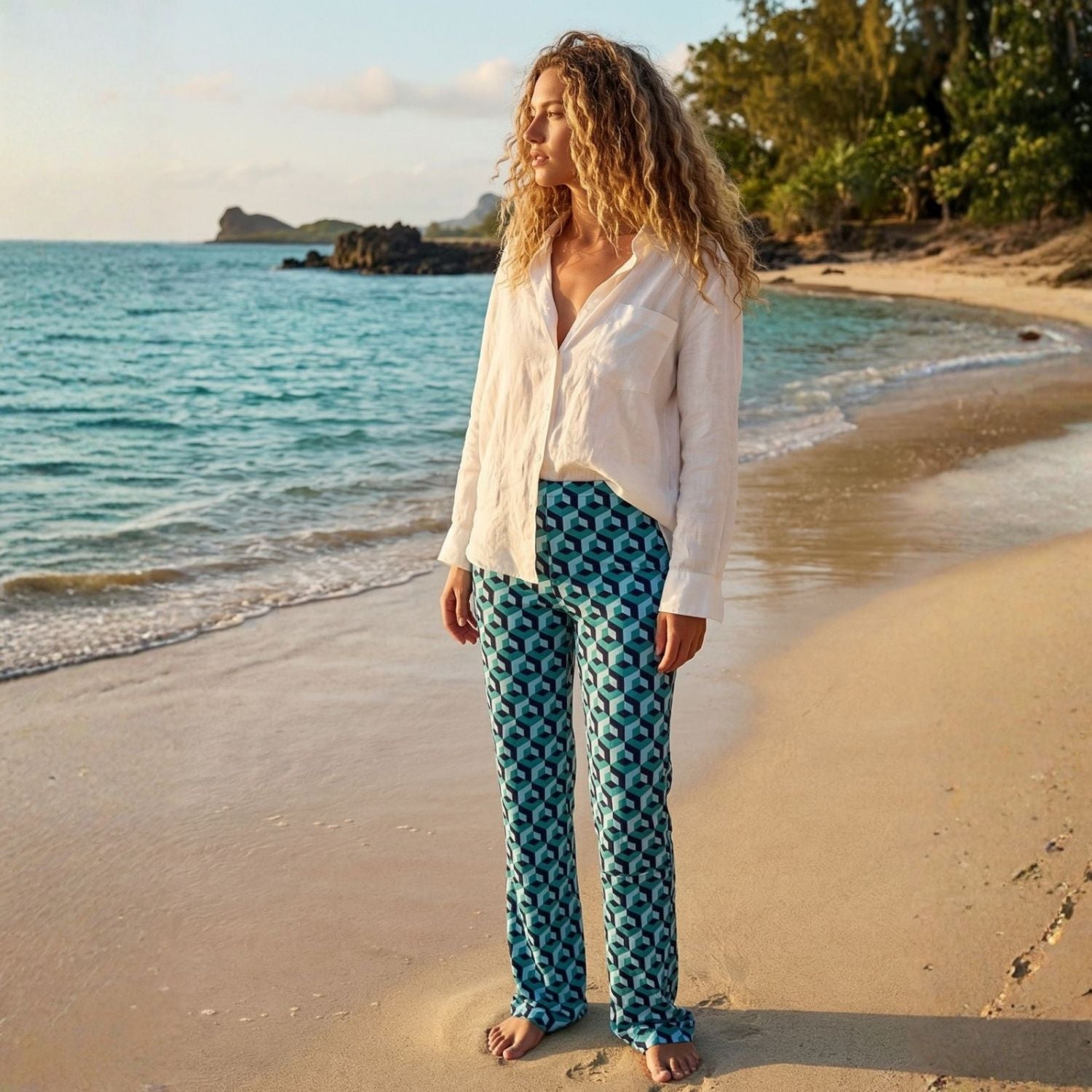 Die Dessins erzählen von Orten, die wir lieben: vom tiefen Blau des Meeres, vom warmen Rot einer untergehenden Sonne, vom üppigen Grün tropischer Gärten. Die Farben tragen das Gefühl von Urlaub in sich - und funktionieren gleichzeitig mitten im Alltag: im Büro, in der Stadt, bei Einladungen oder auf Reisen.